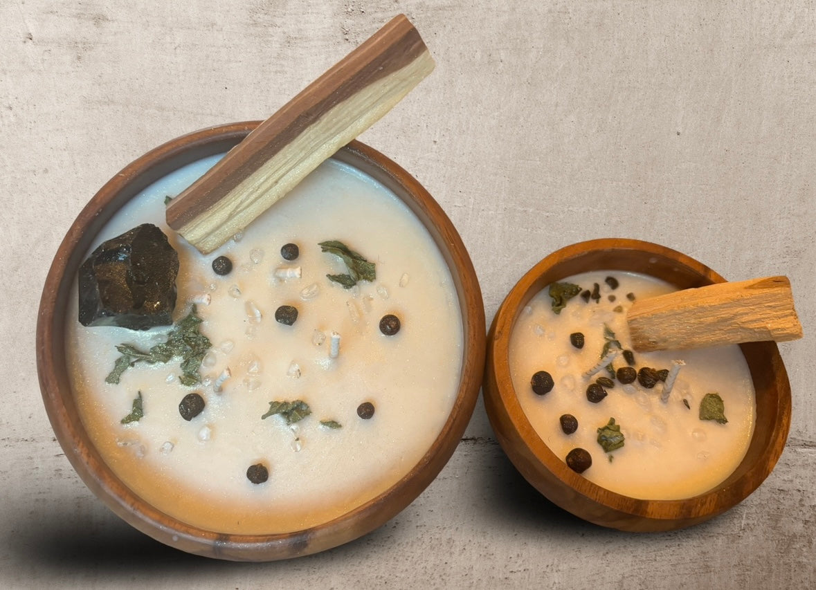 Infused with the sacred essence of palo santo essential oil, this candle carries the energy of cleansing and divine protection. Known as “holy wood,” palo santo has been used for centuries in spiritual practices throughout South America to clear stagnant energy, invite blessings, and restore peace to sacred spaces. Its grounding yet uplifting aroma helps to release negativity while deepening your connection to higher guidance.