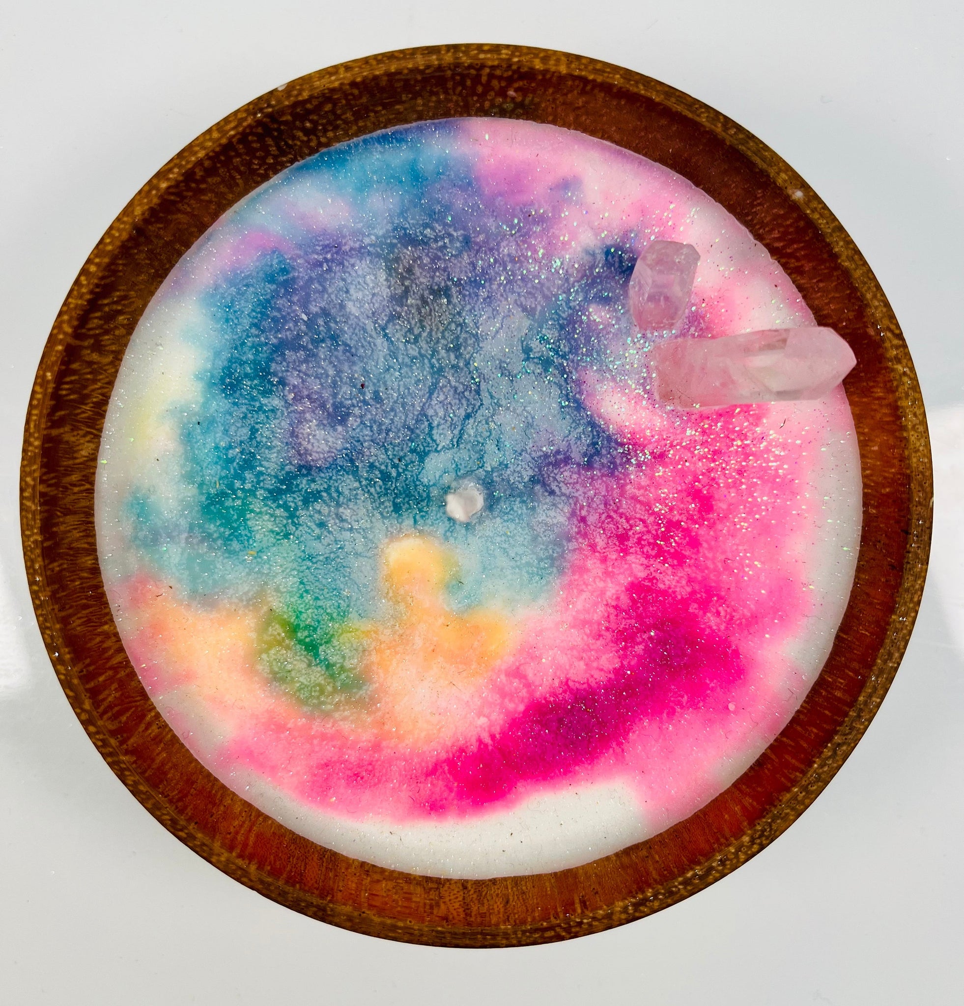 All candles are thoughtfully designed with sustainability in mind. Made entirely from natural materials including pure essential oils, cotton wicks, mica shimmer, and genuine crystals. These hand-carved wooden vessel are intended for reuse, offering new purpose long after the flame has faded.
