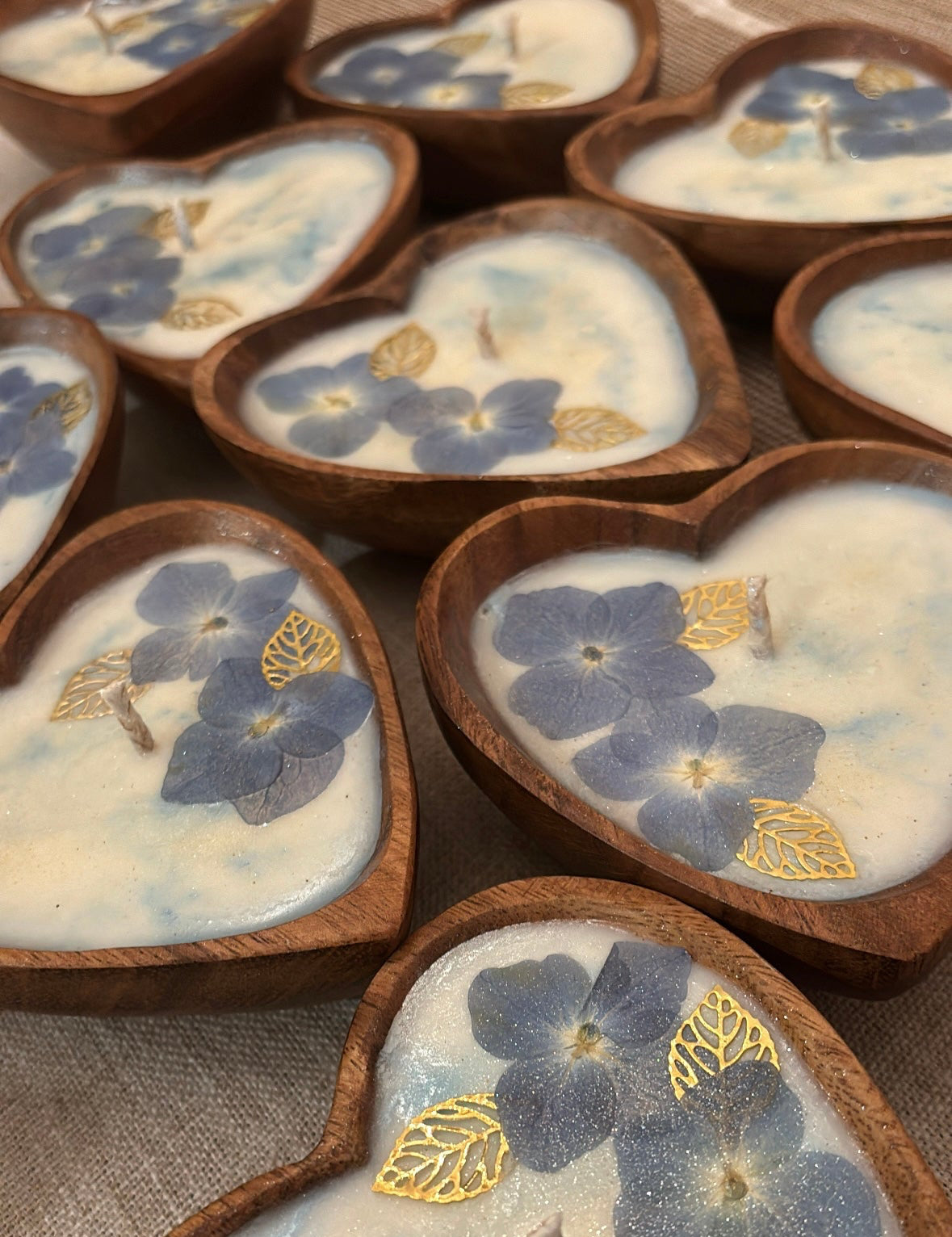Every candle is lovingly poured using natural soy wax, pure essential oils, and genuine crystals, then finished with hand-selected herbs or botanicals to match your chosen theme or intention. The result is a keepsake that radiates warmth, beauty, and energy long after the celebration has ended.